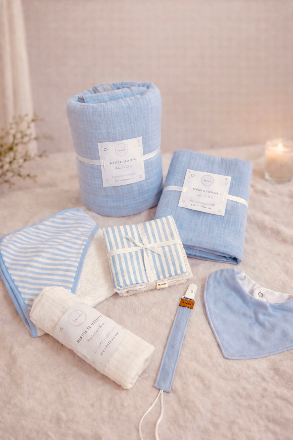 Todo lo necesario para recibir al bebé con suavidad, abrigo y productos de excelente calidad.
